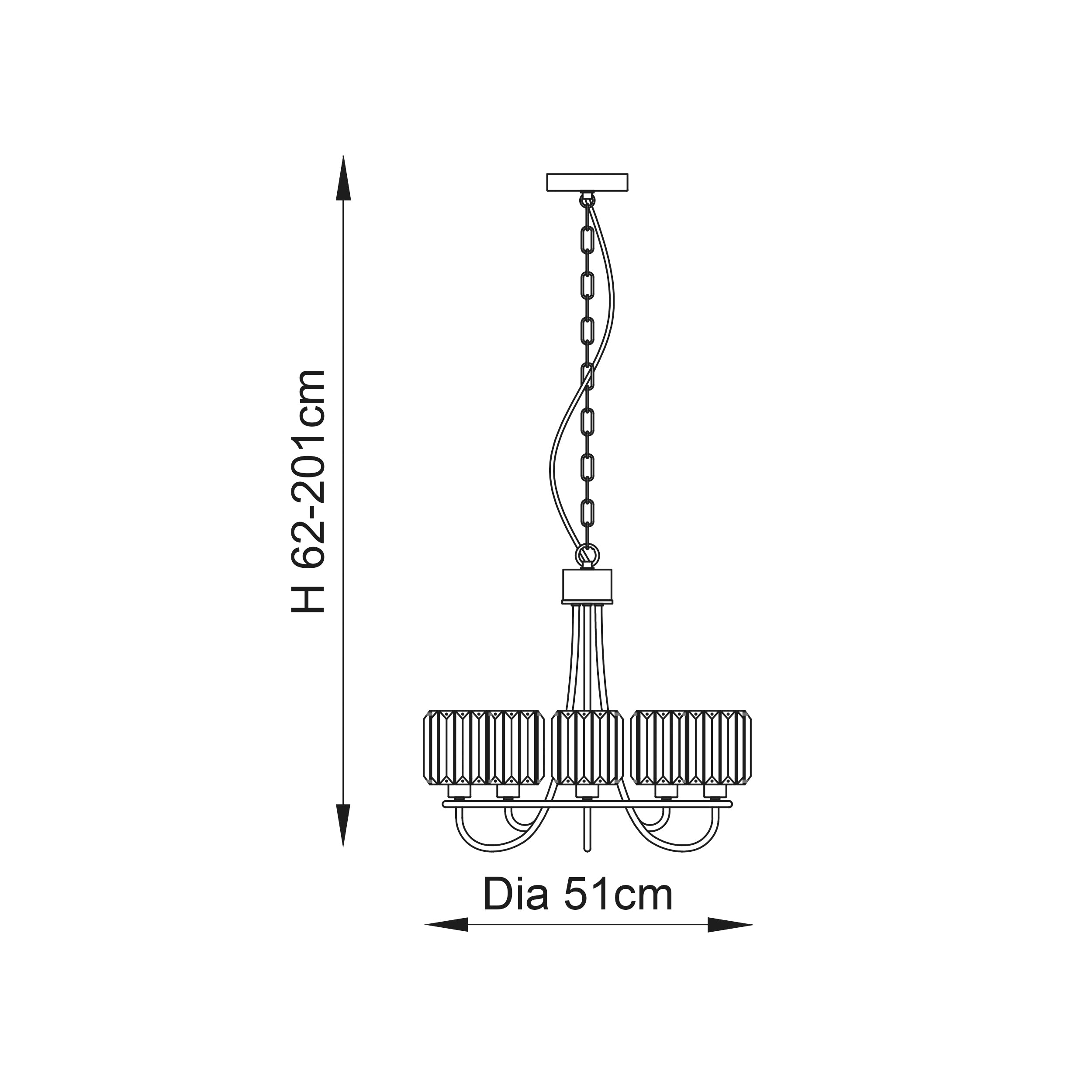 This Berenice 5-Light Pendant Chandelier exudes sophistication and elegance. It features five lights and decorative clear cut faceted glass shades which provide a beautiful and well-distributed light. Perfect for adding a touch of glamour and charm to any space.