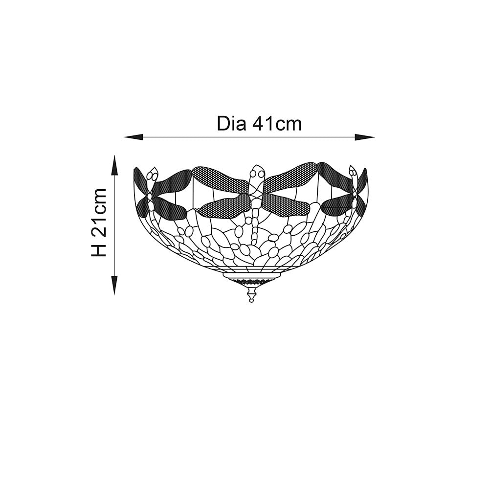 Illuminate your space with the Dragonfly 41cm Tiffany Flush Ceiling Light. Featuring the iconic Tiffany Dragonfly design in vivid blues and multi-coloured glass beading, this light provides a stunning touch to any room. The dark bronze effect fitting adds a touch of elegance, making it the perfect addition to your home decor.